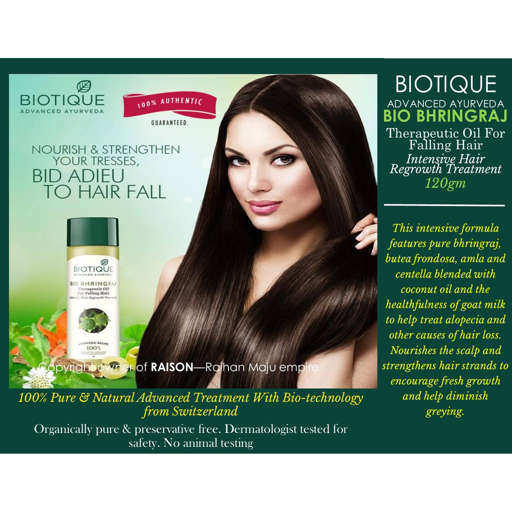 Biotique bio bhringraj therapeutic oil for falling hair. Buy biotique bio bhringraj therapeutic hair oil for falling hair intensive hair regrowth treatment, 800ml online at low price in india on amazon.in. Bio bhringraj therapeutic hair oil therapeutic oil for falling hair intensive hair regrowth treatment. This intensive formula features pure bhringraj, butea frondosa, amla and centella blended with coconut oil and the goodness of goat milk to help treat alopecia and other causes of hair loss. You are going to find the